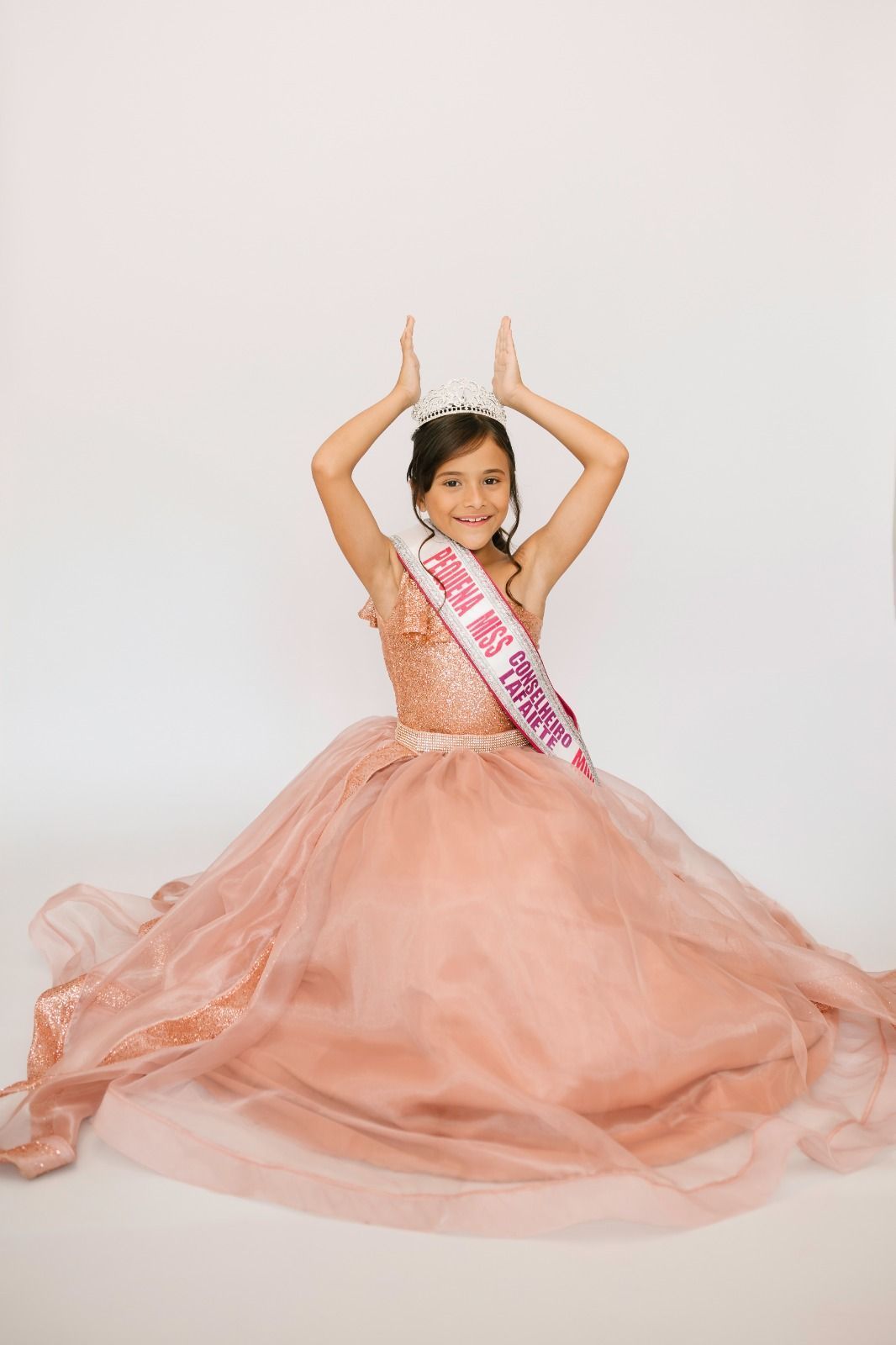 Mas foi com o anúncio do concurso Miss Conselheiro Lafaiete que tudo realmente mudou. Nicolly não apenas se interessava por fotos — ela queria a coroa. Tentou em 2024. Não venceu. Mas, como as verdadeiras rainhas, levantou a cabeça, aprendeu com a experiência, fez amizades e continuou a caminhada. Em 2025, o tão sonhado momento chegou: foi coroada Pequena Miss Mini Conselheiro Lafaiete MG.